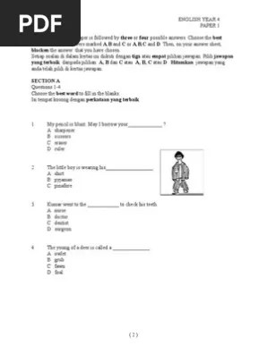 Bahasa inggeris tahun 1 (quizizz). Ujian Bahasa Inggeris Tahun 4 Kertas 2